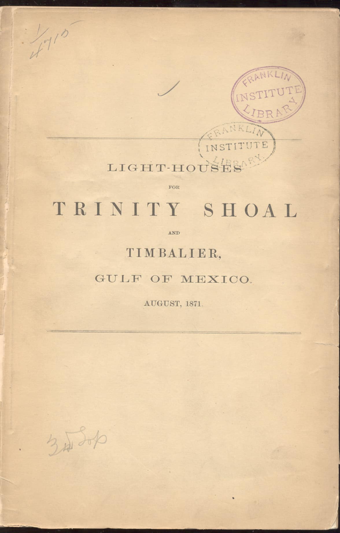 1650-2. Light-House Establishment. Specifications for First-Order Iron Light-Houses to be Erected on Trinity Shoal and Timablier, Gulf of Mexico. Washingon: GPO. 1871