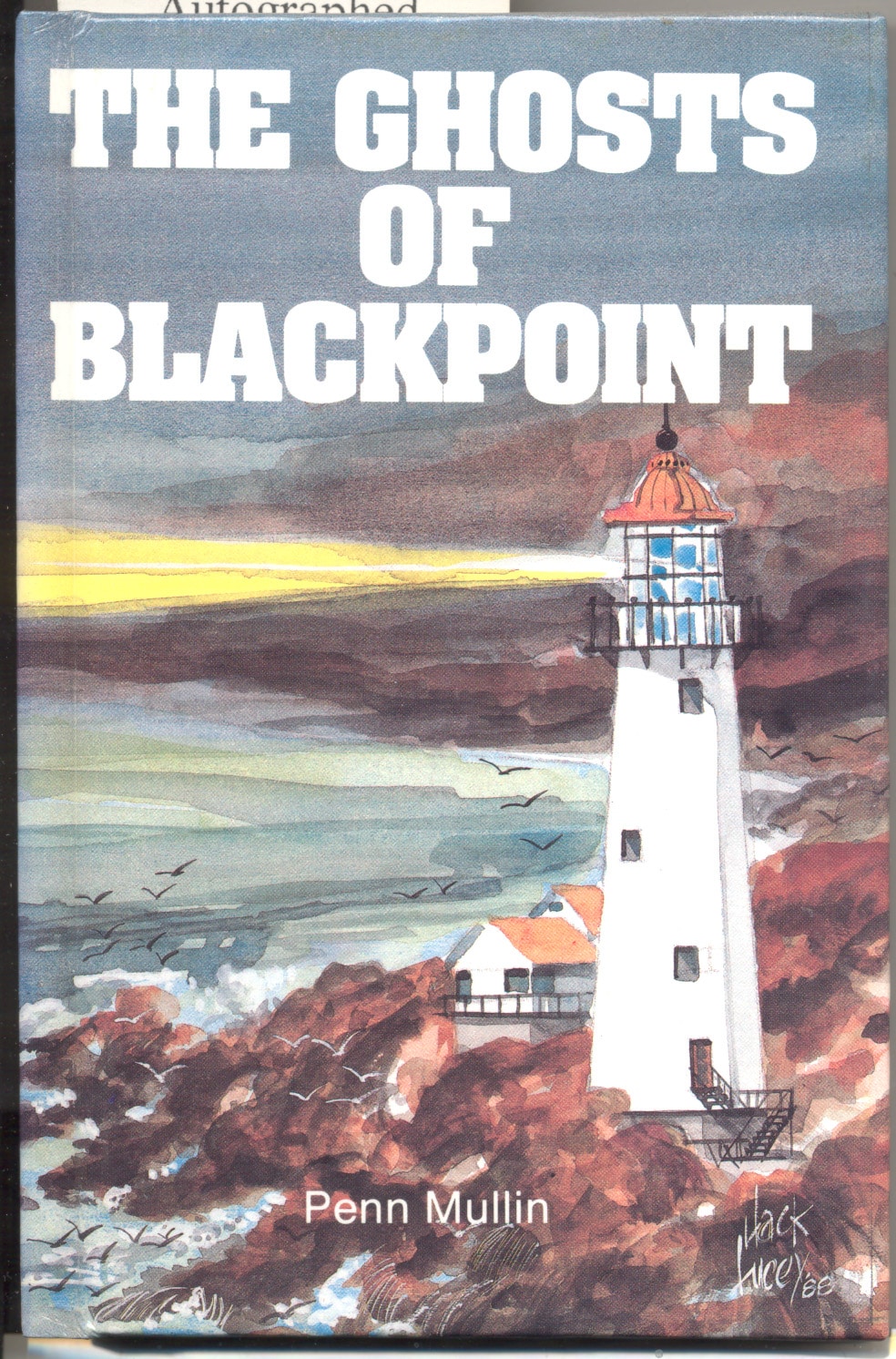- Mullin, Penn. THE GHOSTS OF BLACKPOINT. Novato. 1989. 60p. Signed by the author. Last summer Monica quit her job in the middle of the fishing season because of her fear of storms and now, this year, no one in town will hire her and she badly needs a summer job. When she hears that the lighthouse keeper is looking for an assistant, Monica applies and is hired. That summer Monica learns a great deal about the lighthouse and about her own courage in the face of impending disaster. A wonderful children’s lighthouse tale. (F). $21.