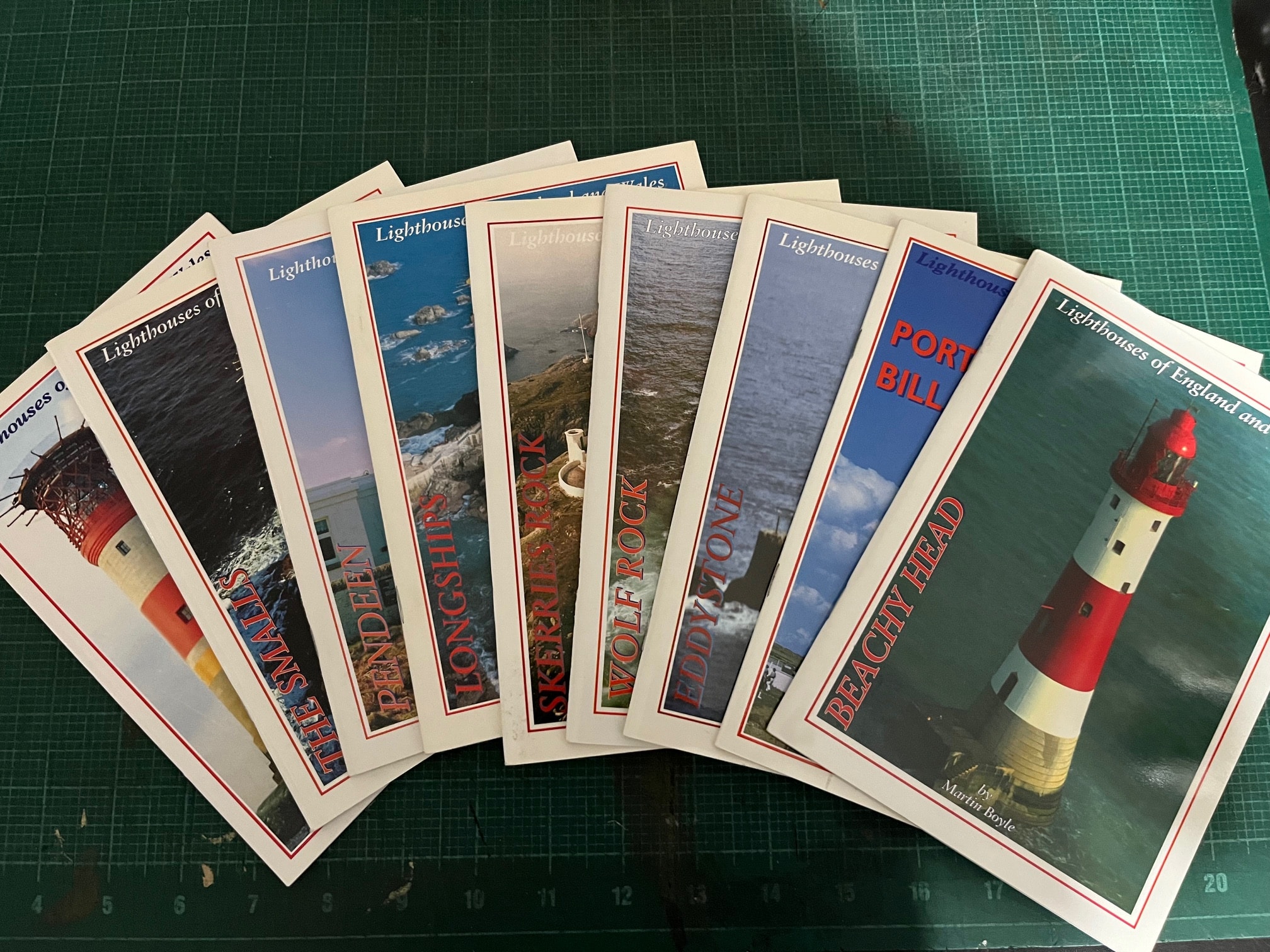 23453. Boyle, Martin. LIGHTHOUSES OF ENGLAND AND WALES. Southampton. 1999. 20-50 pages. Soft wraps. Booklet provides a complete history of the lighthouse with sections on early history, construction efforts, specifications, optics and lighting, fog warning systems and much more. Unusually detailed accounts with exceptional vintage architectural plans, photographs and diagrams. An excellent series, thoroughly illustrated and well researched. 12 titles available: Beachy Head, Portland Bill, Eddystone, Wolf Rock, Skerries Rock, Needles Point, Longships, Pendeen, The Smalls, Kinnaird Head, Lighthouses Four Countries – One Aim. $12 each.