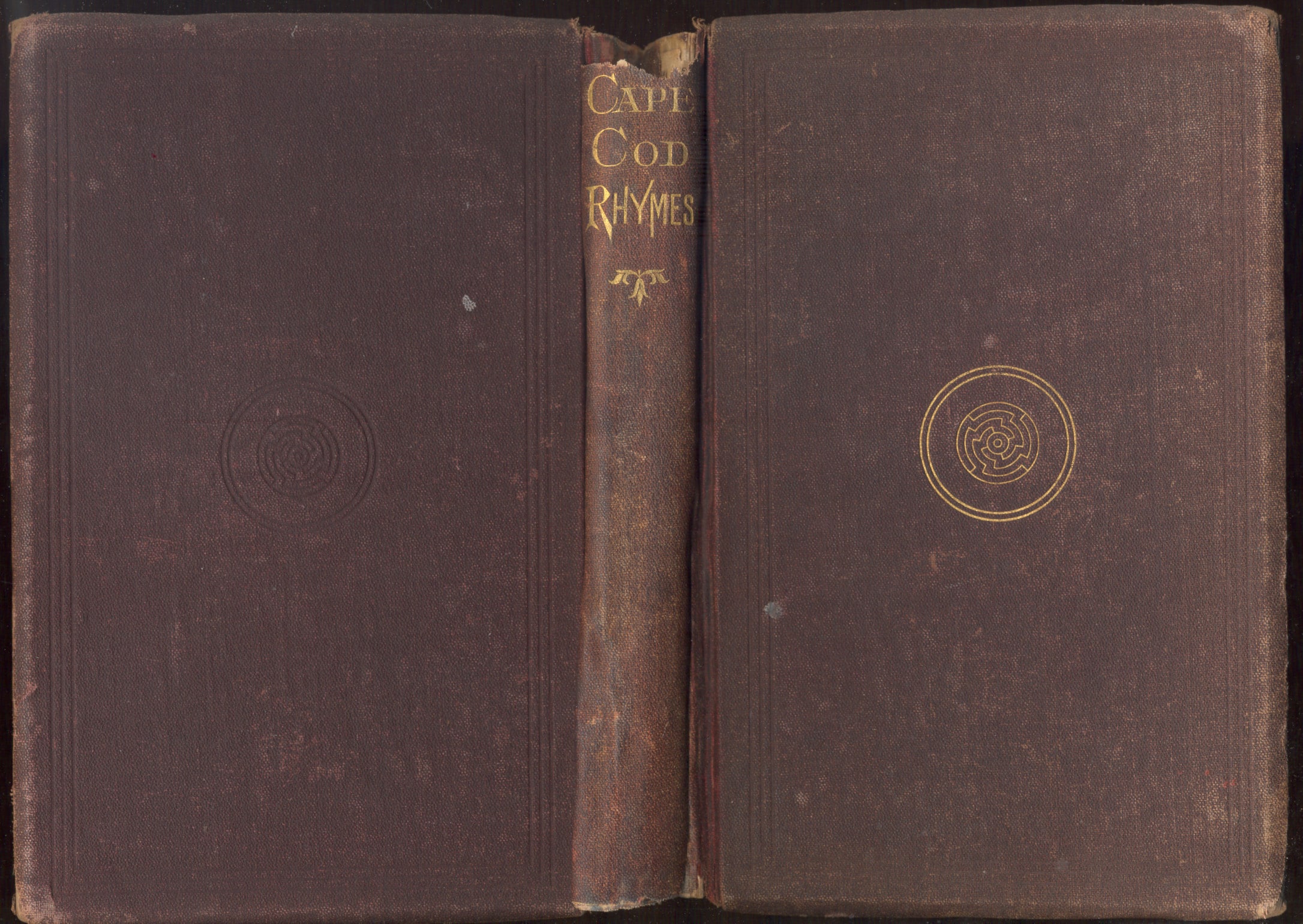 - Stone, T. N. M.D., CAPE COD RHYMES. Cambridge: Riverside Press,1869. First Edition. 217 p. Very Scarce. A solid copy of this scarce book of poetry about Cape Cod. Probably only a small number of copies were printed and it has never been republished. Dr Thomas Newcomb Stone, American physician-poet of the last century, is best known for this book of Cape Cod poetry. Born in Wellfleet, he was one of a number of physicians in his family. On Cape Cod Rhymes, he includes 24 poems of varied length on the subjects of nautical, Cape Cod and local color. He notes in his preface: “These rhymes have been written in the few short intervals of labor allowed to a physician. They are the children of occasion and circumstance, to whom I stand godfather.… To the lovers of Cape Cod I commend them, as rude songs that my waken in them sweeter memories than ever yet found utterance, and thus they may read over again the unwritten poems of childhood, and bring back the days when, in life’s early morning, even Cape Cod was beautiful. If the reader would understand the locality of the bridge which was the occasion of the rhyme called ‘Neptune’s Vow.’ let him take Walling’s map of Cape Cod, and he will see running off from the bay shore of Truro, a long low point called Beach Point, reaching almost to the main – land of Provincetown. Octavo-sized hardcover book, original brown cloth binding with beveled edges; gilt lettering and gilt design on front board. With wear to edges and corners, and some rubbing to boards; hinges intact but worn, some occasional foxing. Some ownership notations on frontis including a Nancy B. Stone. With 4 page bibliography by Massachusetts Medical Society tipped in. A good copy of this very scarce book, published 135 years ago and never reprinted. (G+). $78 net.