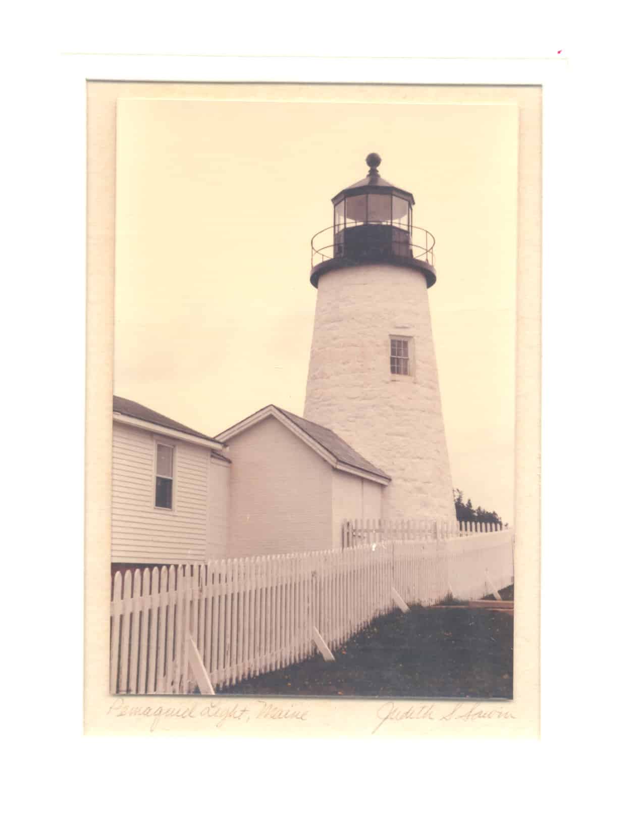 - (photo) Pemaquid Point Lighthouse, Maine by Judith S. Sawin. Beautiful color image, close view with great detail is professionally mounted in beveled mat by photographer Judith Sawin of Bath, Maine. Exquisite view, ready to frame. (F-). $44.