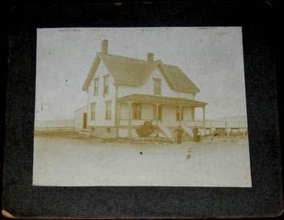2826 / 12217. (lot mounted photo & glass slide) Keeper Mills & Grace Gunderson, Ipswich Range Lights, Massachusetts c.1909. Extremely rare views shows the keeper’s house at the Ipswich Range Lights, with Keeper Mills Gunderson and his wife Grace standing at the porch stairs. In 1837, two lighthouses were built on the stretch of sand now known as Crane Beach, east of the mouth of the Ipswich River. These two lights served as a range for mariners coming through the main channel toward the mouth of the Ipswich River. For just over a century, a succession of keepers and their families kept watch at this light station. Keeper Gunderson immigrated from Norway in 1890 and married Grace Stanley in 1894. He was appointed keeper at Duxbury Pier Lighthouse and served from 1897 to 1902. He then transferred to this station in Ipswich from 1903 to 1911, and then to Boston Light from 1911-1916. He then transferred to Stage Harbor Light on Cape Cod at a reduction in salary of $200, where he received a commendation in 1918 for the excellent condition of his station. In 1918, after setting the light for the night, Keeper Gunderson committed suicide by hanging himself in a shed while his wife was in town. Reportedly, he was distraught by the illness of his son. Rare view, one of the few in existence showing Mills with his wife Grace, and one of the few providing a close view of the keeper’s residence in Ipswich. In addition is a period glass projection slide showing the light tower and elevated walkway. Photo measures 3 ½” x 4 ½” on 5” x 6” mount. Marked in pen on back “This is the house we live in. Mrs. Grace Gunderson, Ipswich Light St., Ipswich, Mass. Box 680”. Image clean, light wear/soil to mount. Slide measures 3 ½” x 4” overall and is extremely clear. (VG). Set $74.