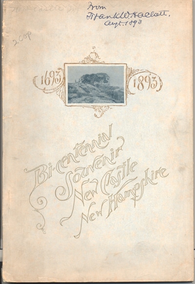 3064. Curtis, Chester B. Bi-Centennial Souvenir 1693-1893 New Castle, New Hampshire (Jerry’s Point Life Saving Station) . 1893. Republican Press Assoc. 51p Soft wraps. Nicely done booklet includes program for the bicentennial event, addresses by town officials, and the history of the town with some photos of historic locations. Tipped in is a handwritten note by Frank Hackett presenting this booklet to a Mr. John Ward Dean Esq. New Castle is the smallest and most easternly town in New Hampshire, located on an island and includes the Jerry’s Point Life-Saving Station. Included is a 2-page article on the history of the station with notes of heroic rescues during the Great Gale of 1888. Good reading. Clean, tight, light soiling to wraps, presenter’s name in ink on front wrap. (VG). $44.