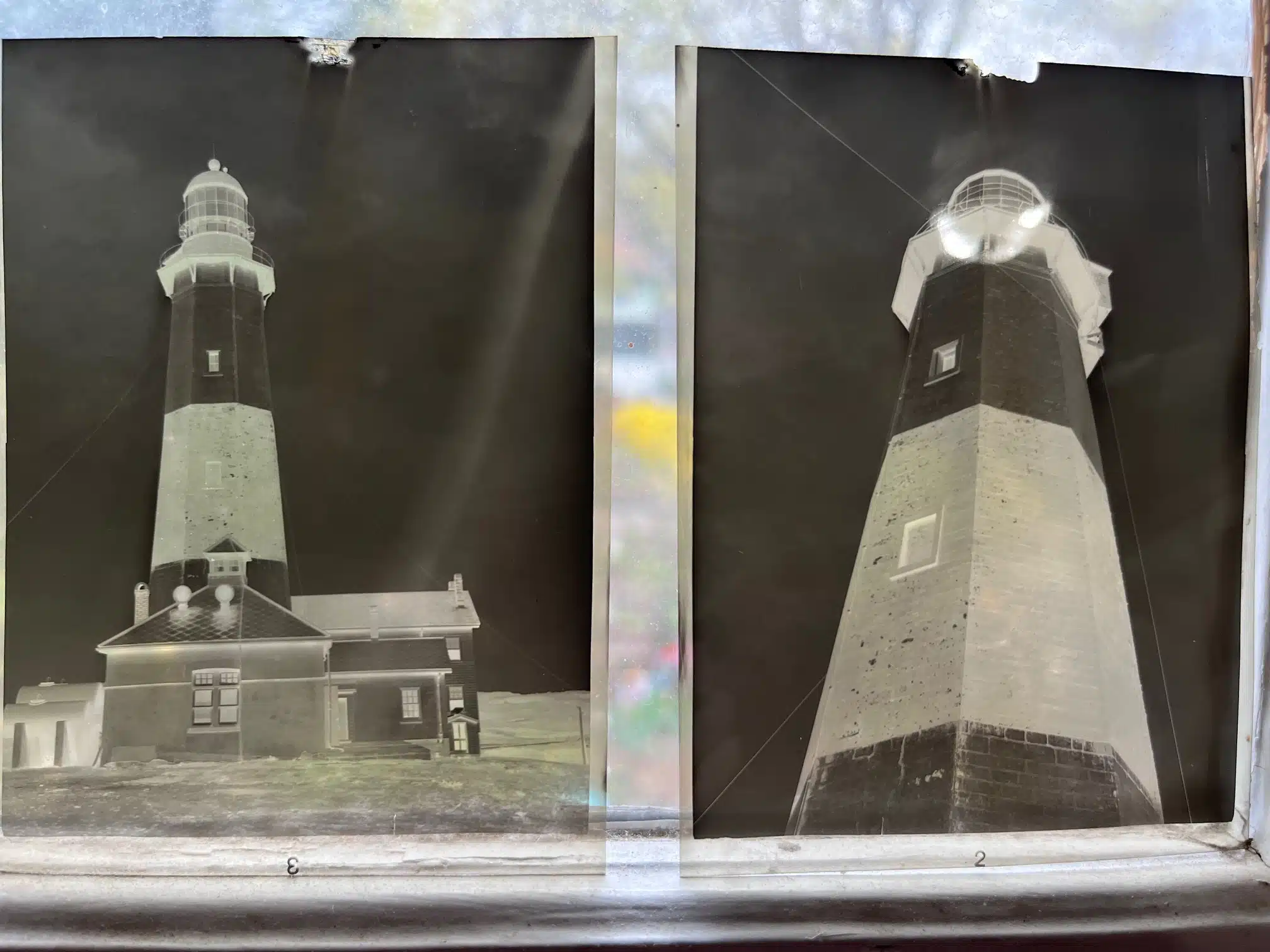 - (lot 3 negatives) Montauk Point Lighthouse, Long Island, New York. The Montauk Point Lighthouse, commissioned by President George Washington in 1792, is one of the best-known and most-beloved icons of Long Island. It was the first lighthouse to be built in New York, and is the fourth-oldest working lighthouse in the nation. It was named a National Historic Landmark in 2012, one of only 12 lighthouses to be so honored. Large 3 ½” x 4 ½” negatives will make fine large prints. (VG+). $18.