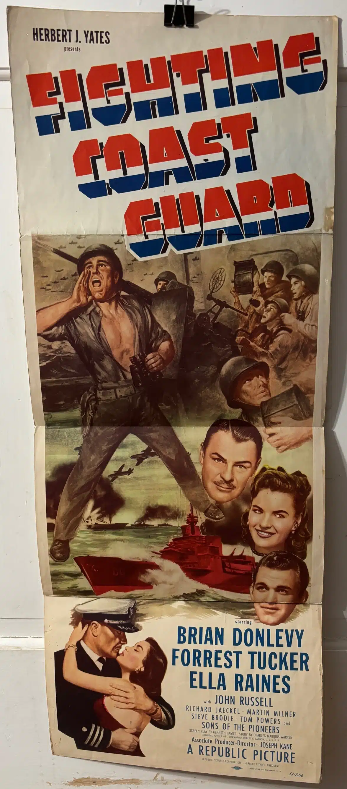 35007b. (movie theatre lobby poster) Fighting Coast Guard with Brian Donlevy, Forrest Tucker, Ella Raines. A Republic Picture. 1951. Marked USA 51-266