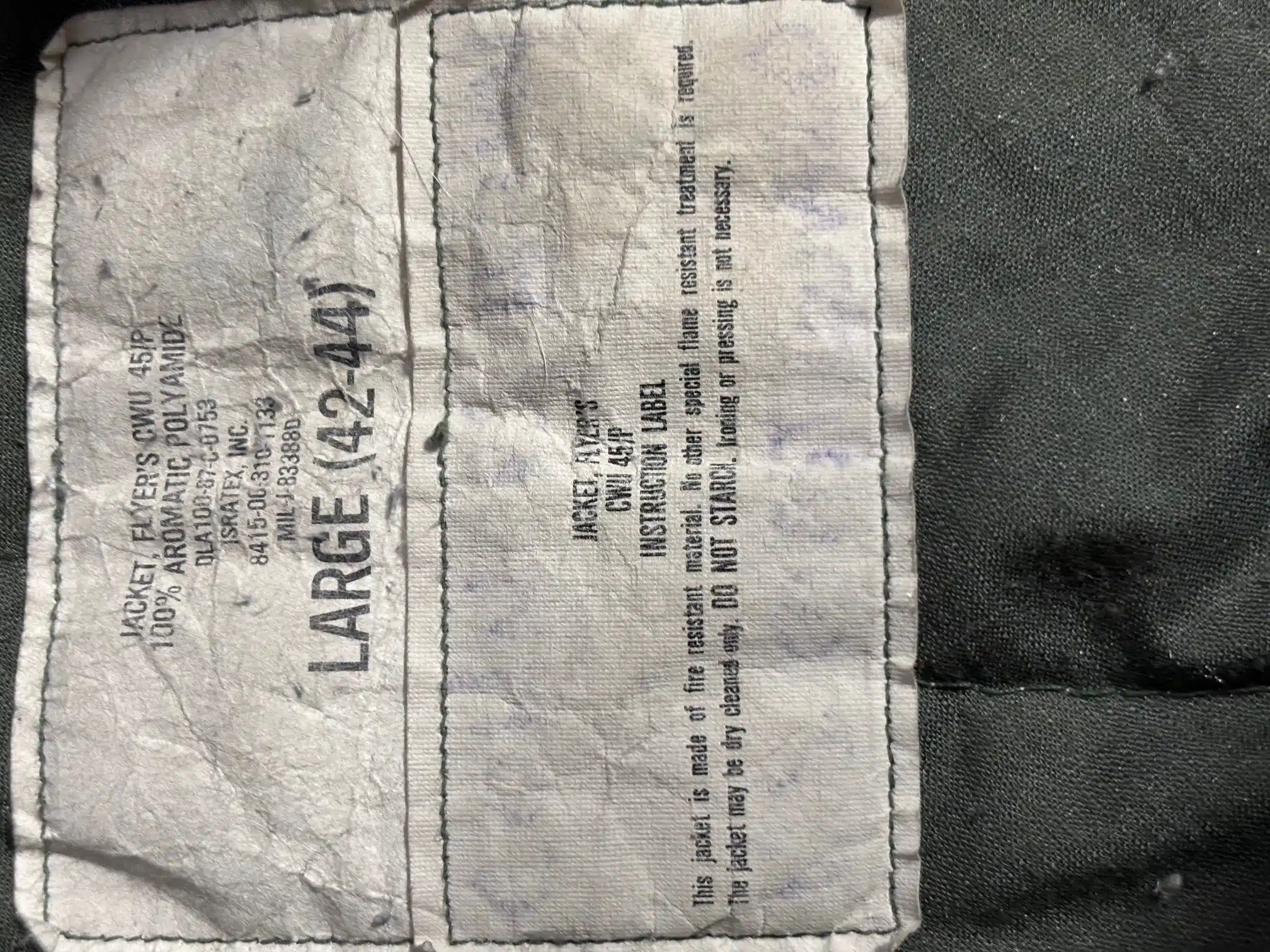 The CWU is probably one of the most practical flight jackets ever design. This is a Coast Guard lightly used example of a 1980’s pattern for the Cold Weather Flyers’ Jacket; the MIL-J-83388D. It was established by the Department of Defense on September 5, 1973. This model was adopted as the successor to the MA-1 and WEP jackets for USAF and USN pilots respectively. It became their main cold protection flight jacket, and since it was given the name of CWU-45/P later in 1977, it has undergone several spec revisions until present.