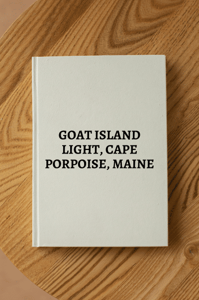 985. (souvenir plate) c.1952 A pretty, bright commemorative plate featuring a large detailed image in maroon of the “Goat Island Light, Cape Porpoise, Maine.