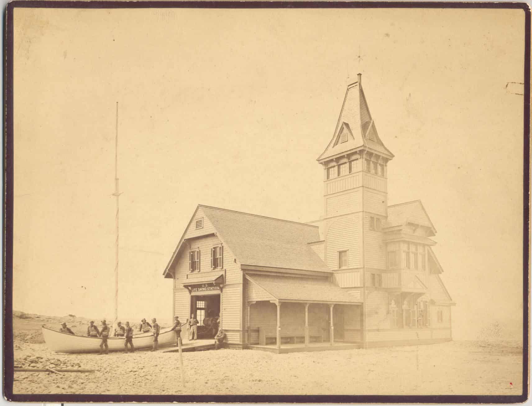 27338. (cabinet photo) Brenton Point Life Saving Station and Crew c.1890