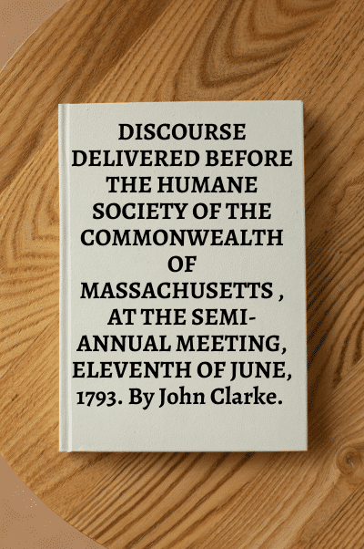 C7365. DISCOURSE DELIVERED BEFORE THE HUMANE SOCIETY OF THE COMMONWEALTH OF MASSACHUSETTS , AT THE SEMI-ANNUAL MEETING, ELEVENTH OF JUNE, 1793. By John Clarke.