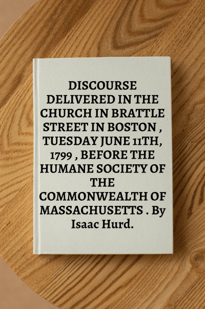 C9424. DISCOURSE DELIVERED IN THE CHURCH IN BRATTLE STREET IN BOSTON , TUESDAY JUNE 11TH, 1799 , BEFORE THE HUMANE SOCIETY OF THE COMMONWEALTH OF MASSACHUSETTS . By Isaac Hurd.