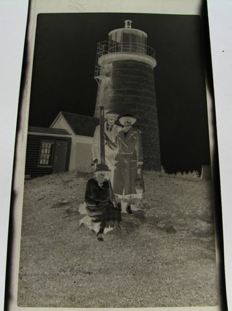 11310. (negative) Monhegan Lighthouse, Maine c.1920-1930’s. Clear negative captures nicely the tall granite light tower and iron lantern as visitors pose for the photographer. Large negative measures 4 ½” x 2 ¾”. and is unusually clear and close. Would provide a great image. Taken by Eugen H. Petersen of Brooklyn, New York about 1920. (VG+). $10.
