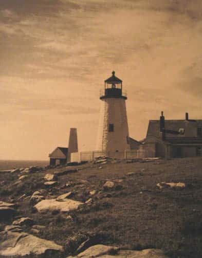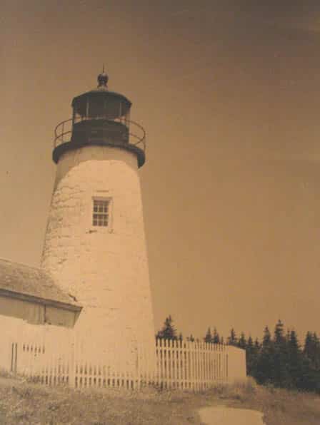 e, f, g. PEMAQUID POINT LIGHTHOUSE. Taken looking south at the rocky ledge and light tower, a bit more distant, with the fog bell tower and dwelling beyond.