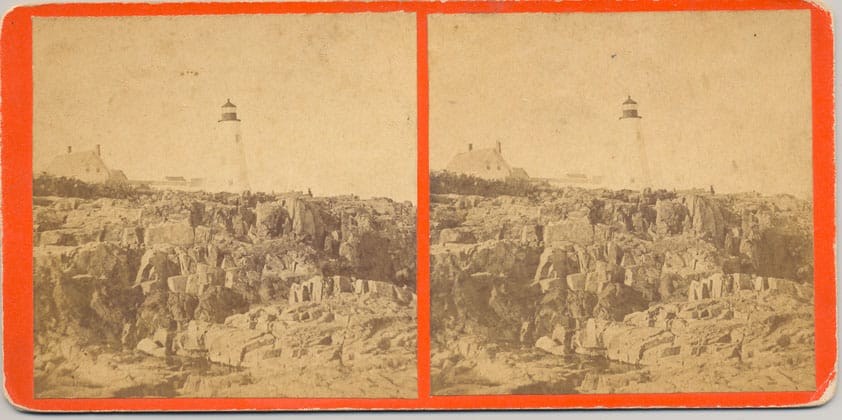 28360. (stereoview) Dice Head Lighthouse, Castine, Maine. c.1870’s.