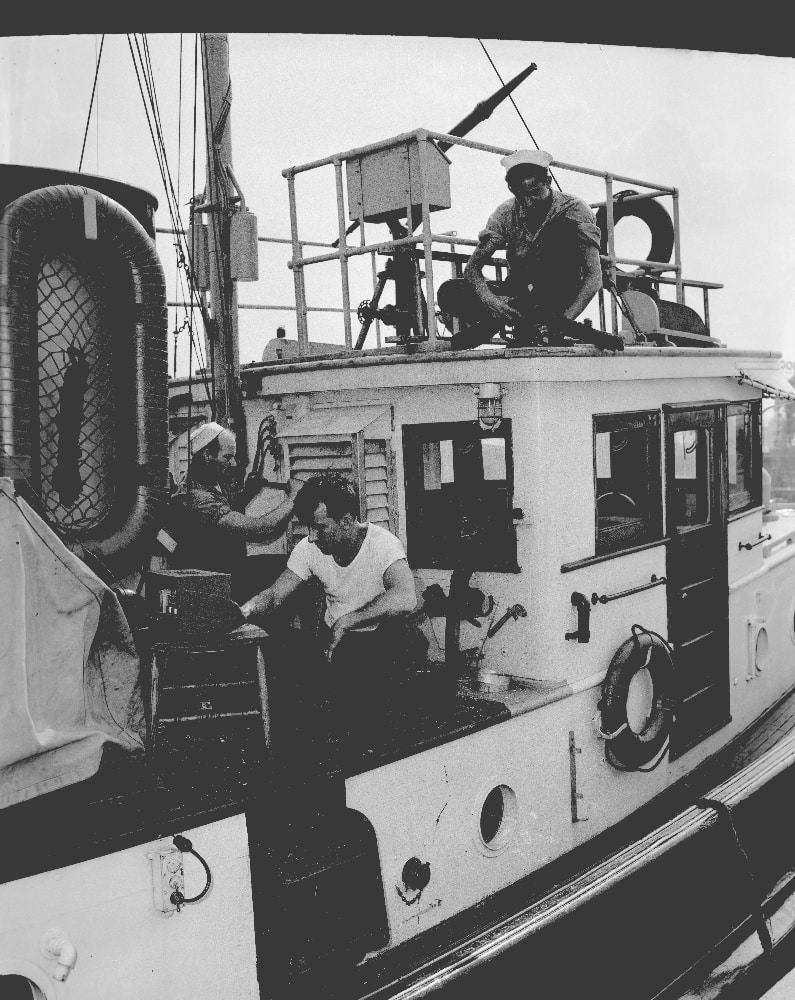10247. (negative) Working on cutter, Coast Guard Station Chicago c.1951